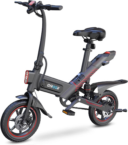 The Gyroor C3 is a high-quality, durable, powerful electric bike perfect for adults and teens alike. It has a 450W motor that can reach speeds up to 19mph. It also features 14″ air-filled tires, dual disc brakes, and three riding modes.